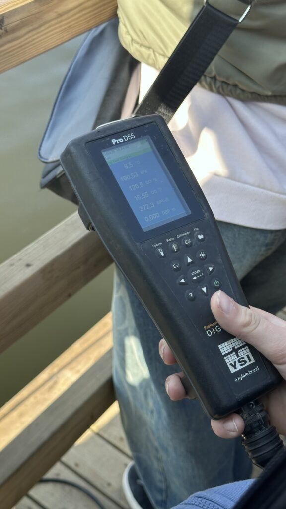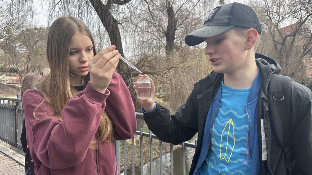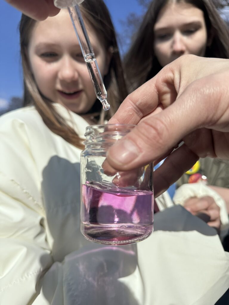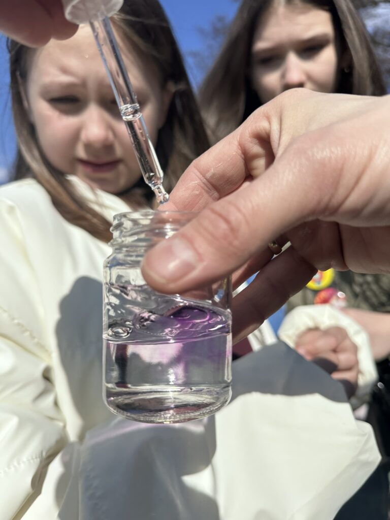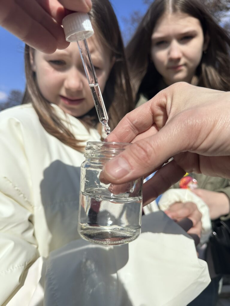 W ramach warsztatów ocenialiśmy „zdrowie” zbiorników wodnych na progu wiosny. Mierzyliśmy wspólnie – z aktywnym udziałem uczniów – za pomocą specjalistycznej sondy: temperaturę wody, ilość tlenu i nasycenie wody tym gazem, a także przewodnictwo elektrolityczne, które mówi o zasoleniu. Sprawdzaliśmy różnice tych parametrów między strefą przybrzeżną i otwartą wodą – tam obserwowaliśmy też, co i jak zmienia się wraz ze wzrostem głębokości. Wykonaliśmy eksperymenty, dzięki którym porównaliśmy jak na jakość wody wpływają zanieczyszczenia – porównaliśmy np. jak pod wpływem soli zmienia się przewodnictwo wody jeziorowej, a jak destylowanej. Mierzyliśmy pH (odczyn) wody i wyjaśnialiśmy sobie, dlaczego się ono zmienia. Warsztaty edukacyjne przeprowadził edukator, dr Konrad Stawecki.